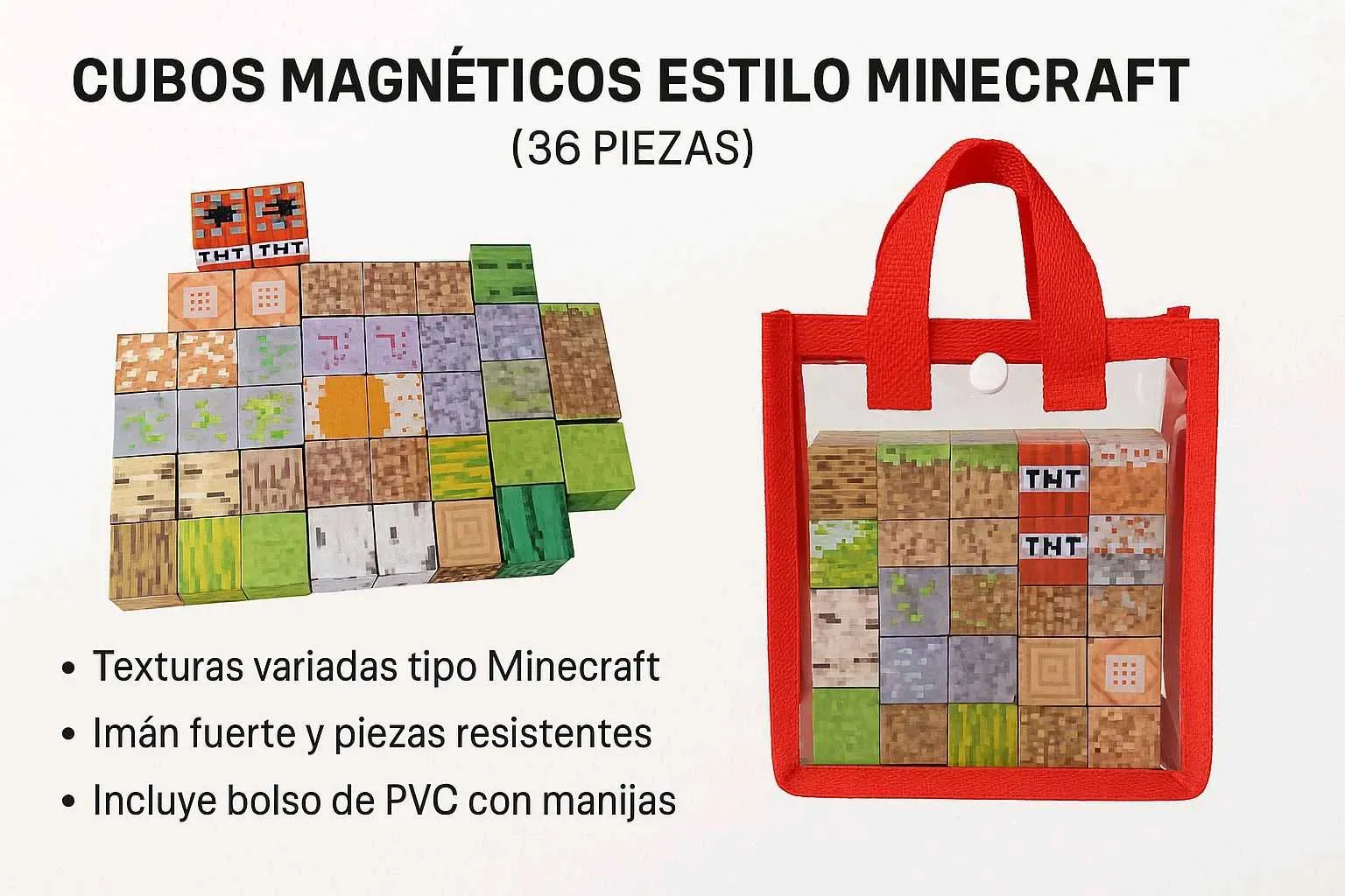 Estos Cubos Magnéticos estilo Minecraft (36 piezas) son ideales para que los chicos construyan, inventen y creen mundos llenos de imaginación.